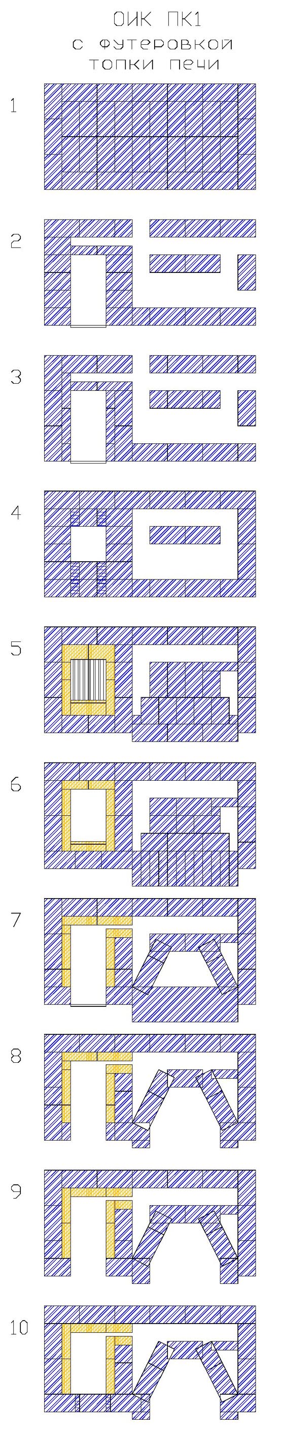Уважаемые мастера, я выбрал для дома печь ОИК ПК1, но хочу сделать топку печи с футеровкой. Прошу вас критически взглянуть на порядовки, которые у меня получились (правда, пока только до 10 ряда) и оценить, будет ли такая конструкция работать?