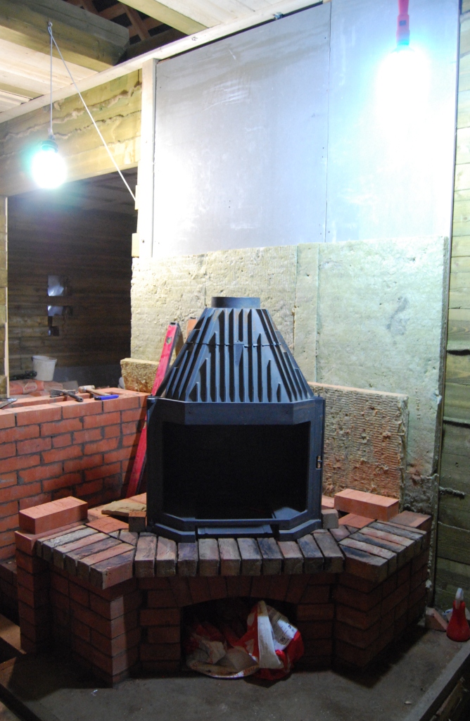 Шпилька d 8 мм.. Опираться будет на три точки, 2 пятки и верхняя кромка касеты через керамический шнур. Несущая балка будет над ней, из красного печного кирпича. Там шпилька 12 мм.. Фотки будут вечером ( не фотал вчера, зарядка на фотике кончилась).