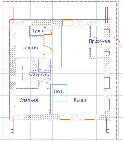Расположение печи видно на картинке. Насколько я могу судить при таком расположении пчь врядли обогреет мне весь дом, поэтому склоняюсь к варианту печь - котел.