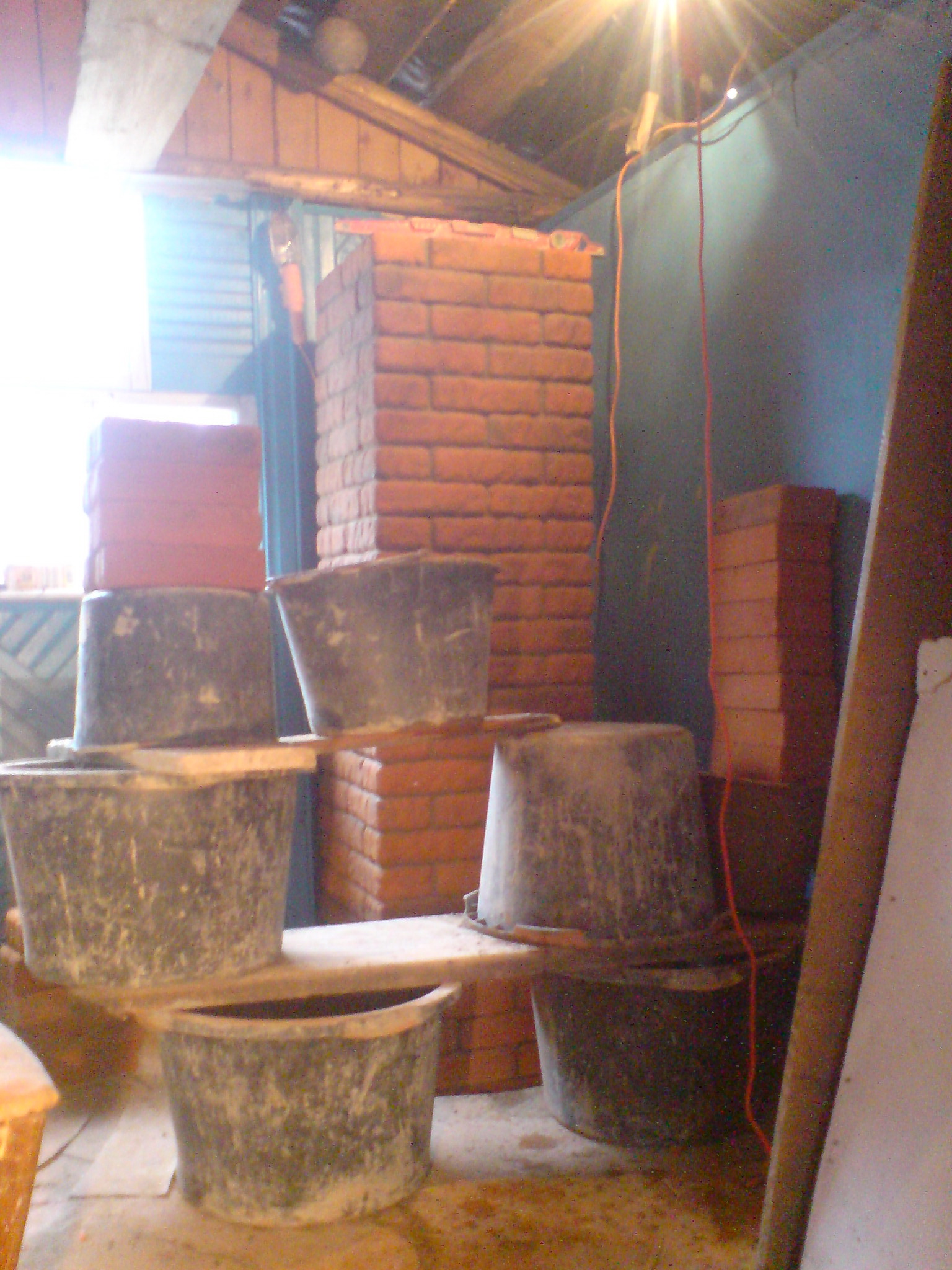 Опустошил бачки от раствора, нашёл доску - вот тебе и леса уже готовы! ))