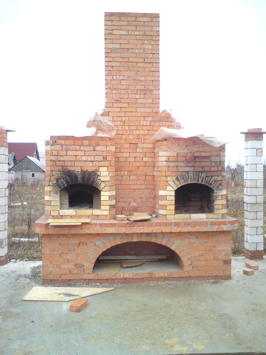 Сложил осенью барбекю + мини-печь по примеру Стрибука... Только дым решил в мини-печи пускать вверх... При контрольной растопке мини-печь дымила, барбекю, казалось, что и нет.... Итог перед вами(((