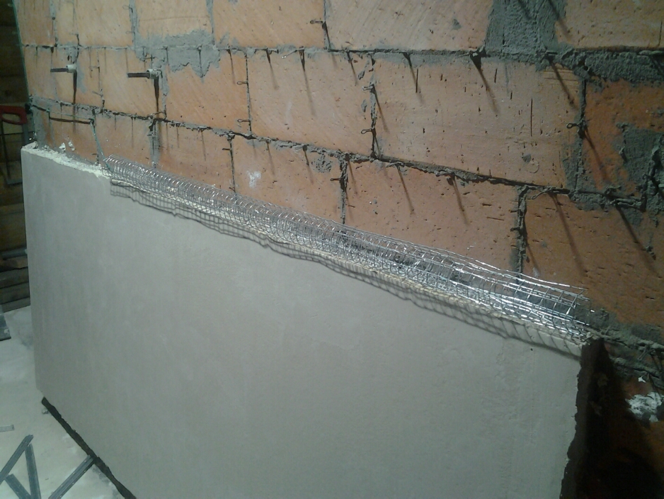 Изготавливаем валик на стене. Для этого надо сделать тягу.