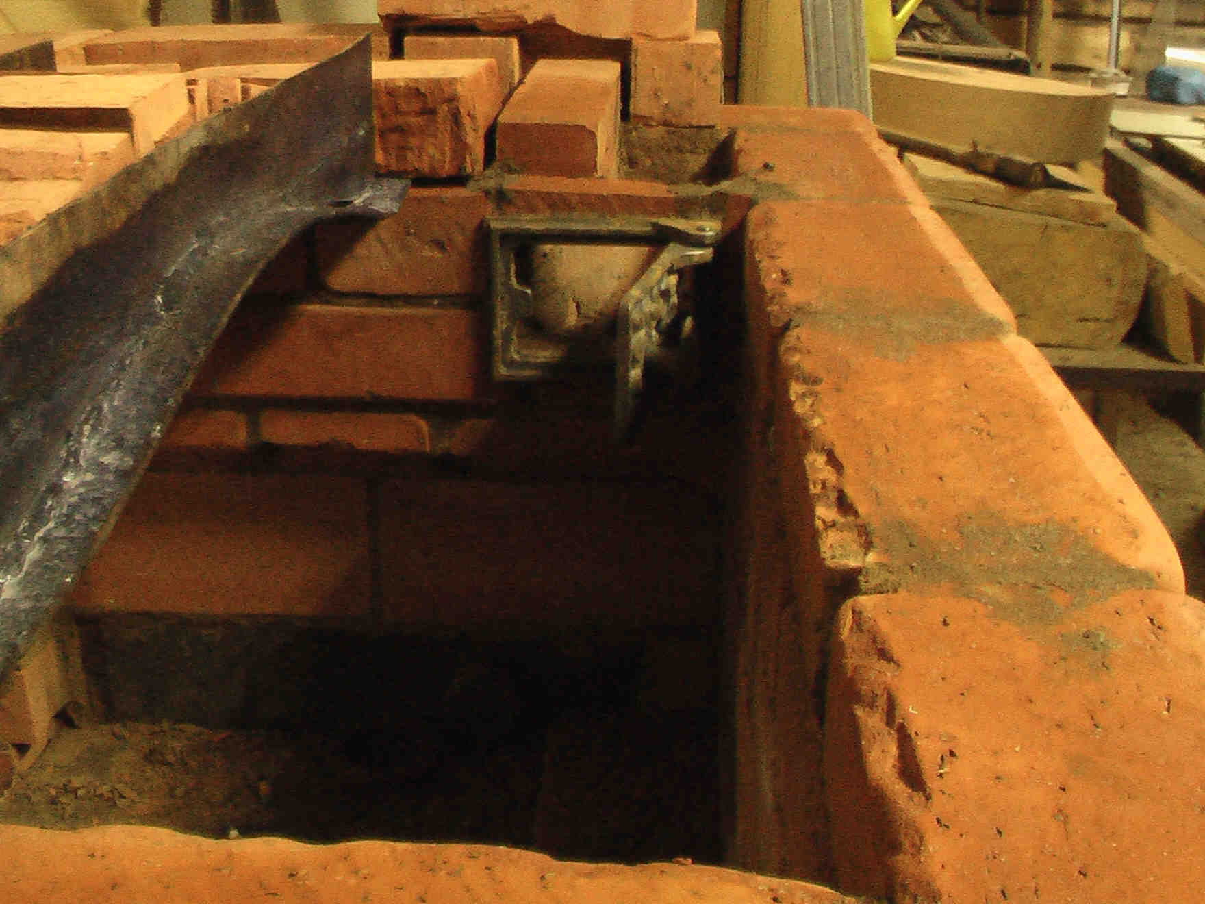 _ Справа наверху эта заслонка, =шибер=, как раньше писал. Ось дверки проходит через трубку, заделанную в кладку. Мож, утеплю её, хоть это и смешно...
