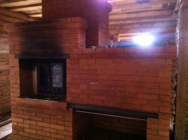 | после мин 10-15 растопки дым прекращается немного поддымлевает при открытых дверцах (решили добавить высоты сендвича, еще не поставили) |