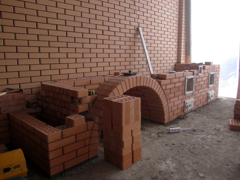 Пока идет только облицовка из щелевого. Топки и все внутренности комплекса из полнотелого кирпича, с зазором от облицовки.