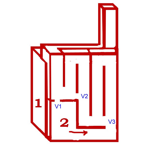 | Реализовал вариант V-1 и этого оказалось более чем достаточно. Единственно, переточное отверстие получилось не 6х6 а 3х14, сказалось отсутствие навыков работы с кирпичом (прямоты рук не хватило, в общем) |