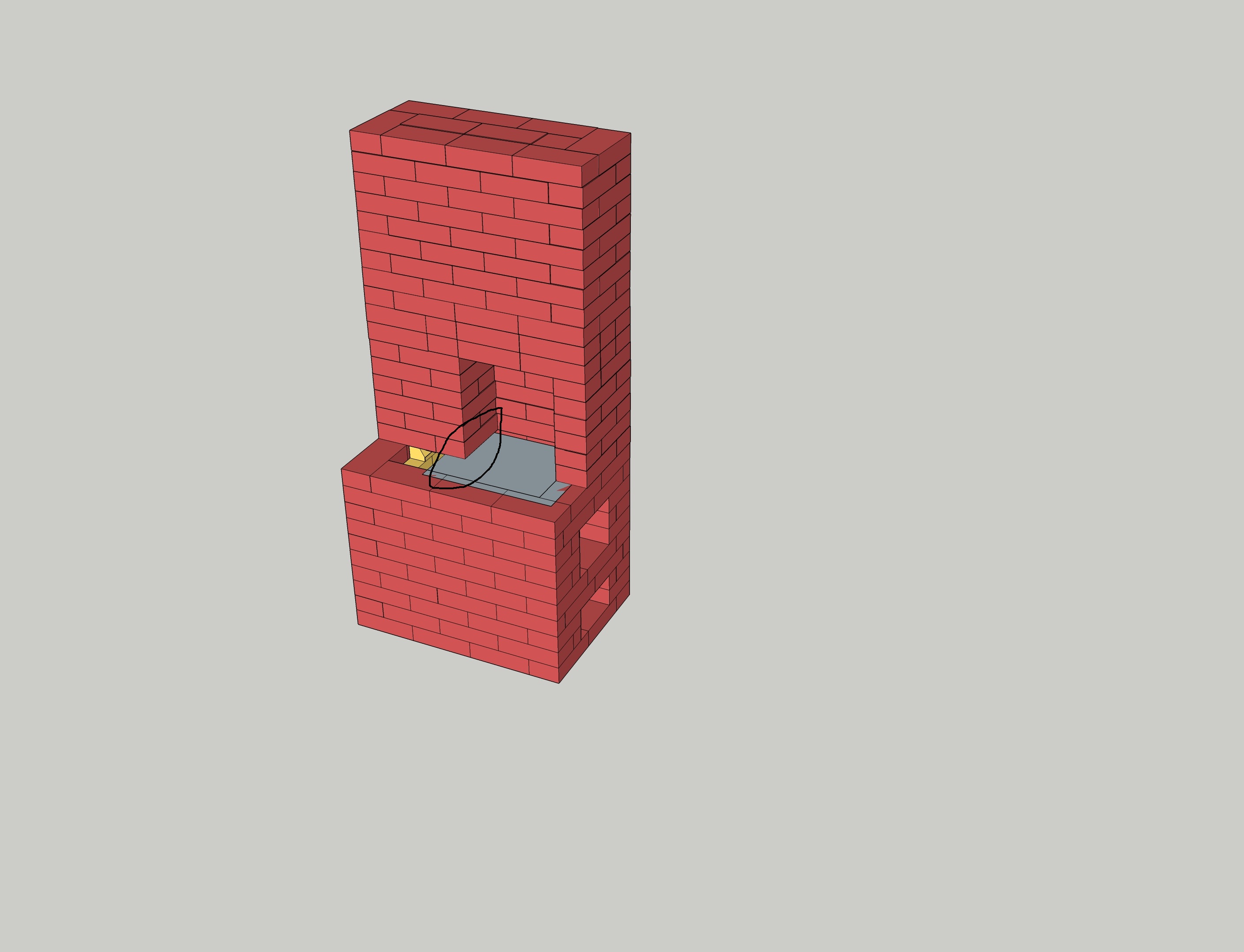 клинчатая арка нужна или обычная над плитой . или немного конструкцию поменяйте , но в любом случае арки .