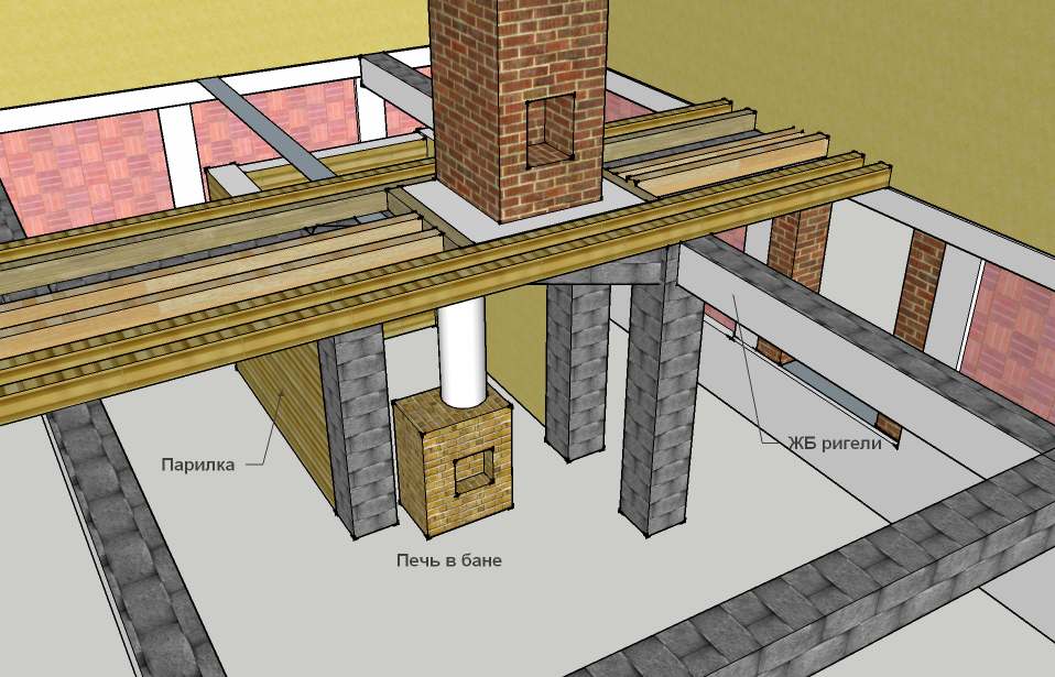 печь будет стоять не на массивном фундаменте, а на колоннах.