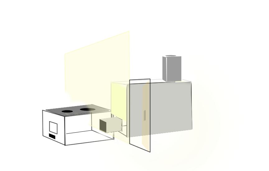 А в комнате поставьте щит 1,5х4,5 кирпича в плане, например двухярусный колпак, площадь его будет 6,5 метров квадратных при 2-х метровой высоте