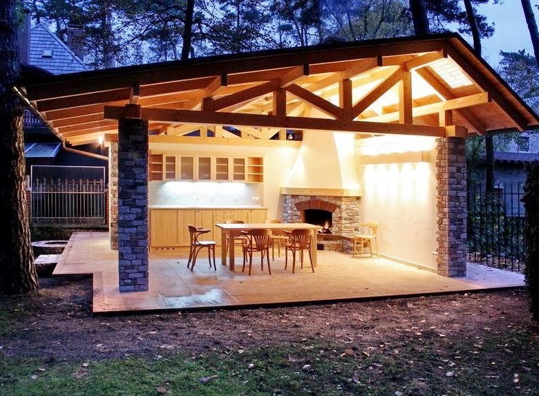 Планирую строительство навеса с барбекю и с печью для казана. На фото стена справа будет наполовину, т.е. где-то 1.20м от пола.