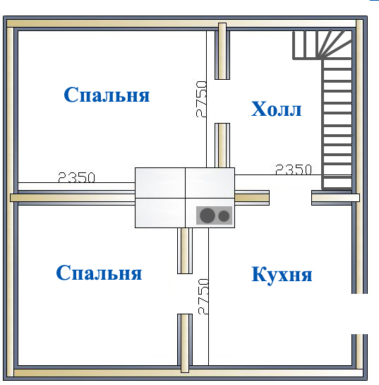 | Вид сверху будущего домика с расположением печи. |