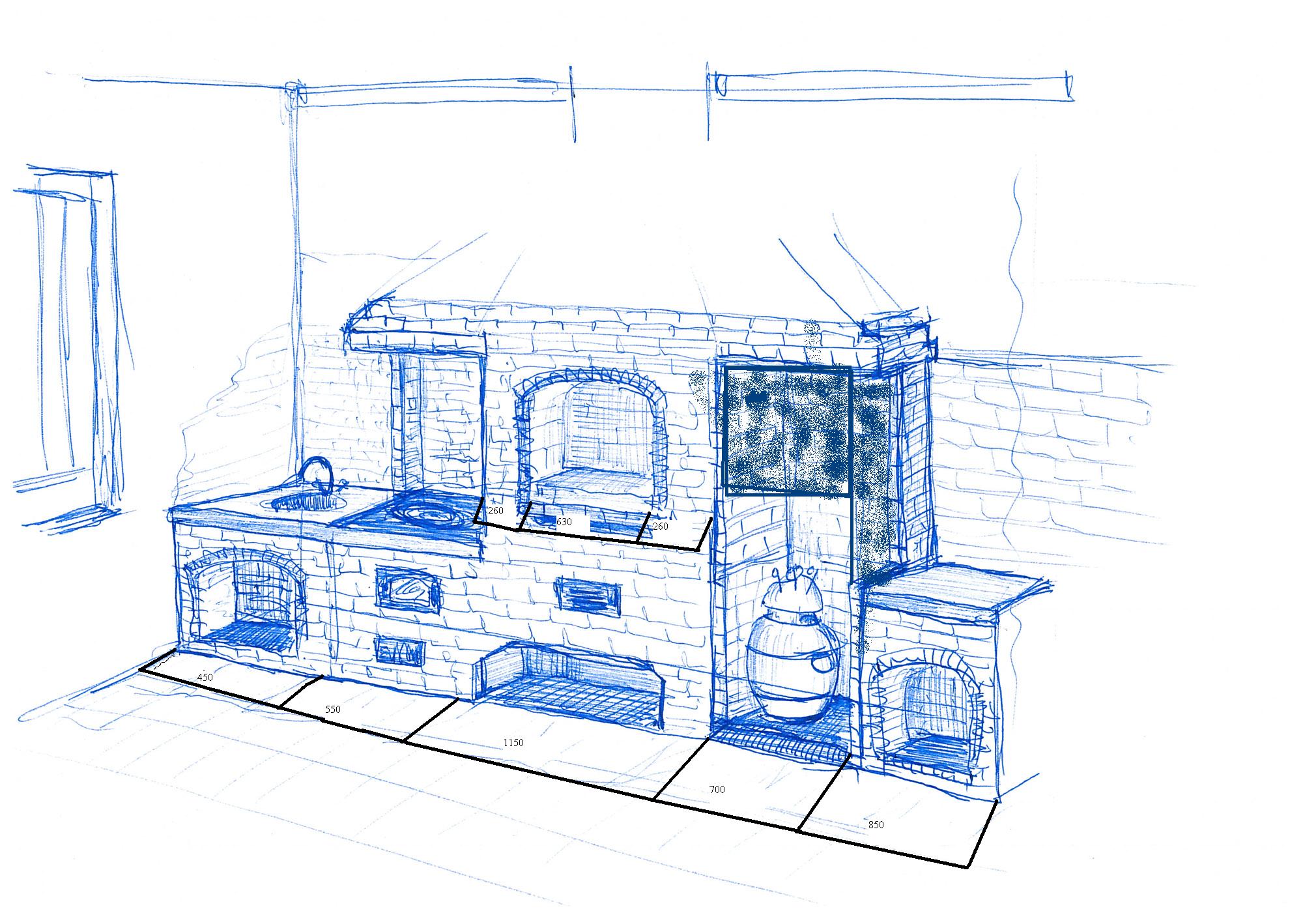 Можно сделать одно единое замечание по условию - тандыр будет иметь - собственный дымосборник, если это тандыр для выпекания и не электрический , а на углях. Отсюда вывод - комплекс будет иметь 2 вытяжные трубы.
