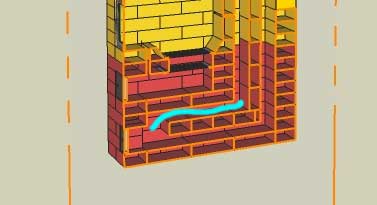 3)при выходе из канала с нижнего яруса в верхний добалил 1 кирпичик, чтоб газы в колпак, а не в дымоход стремились.
