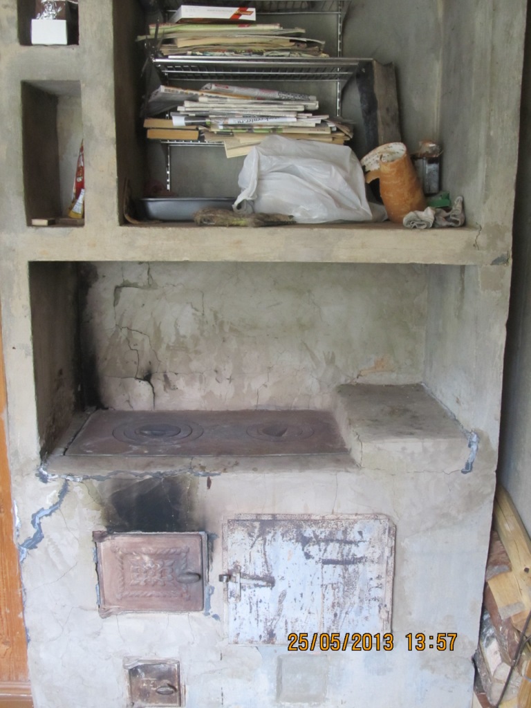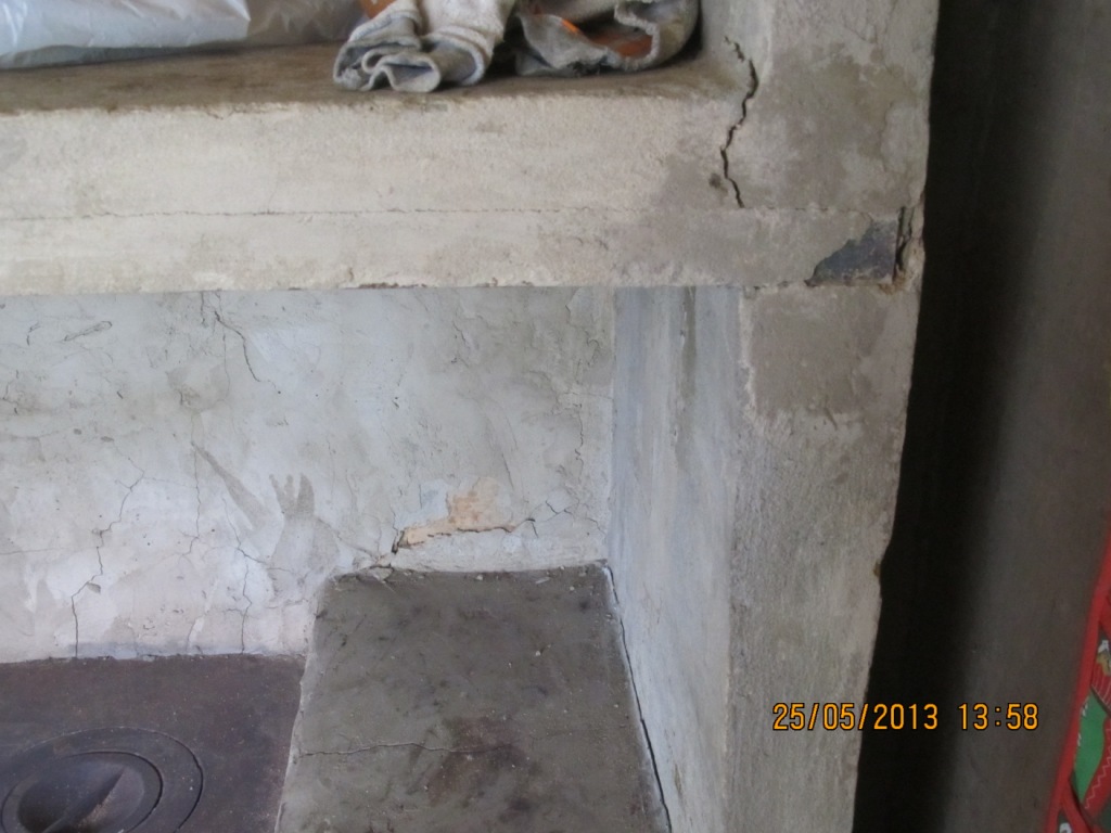 1. В районе топки штукатурка практически не держится.