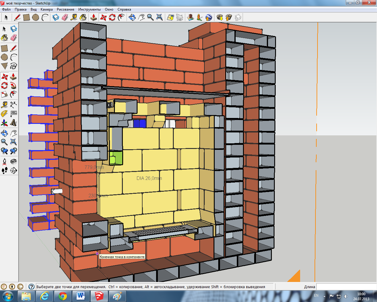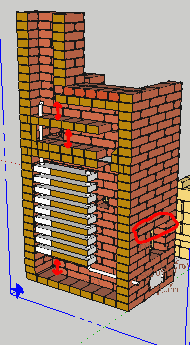 И в проекте разбейте по слоям кладки, очень неудобно смотреть, наверное поэтому печники и не отзываются: им зачем мозг ломать удаляя кирпичи, чтоб глянуть ...