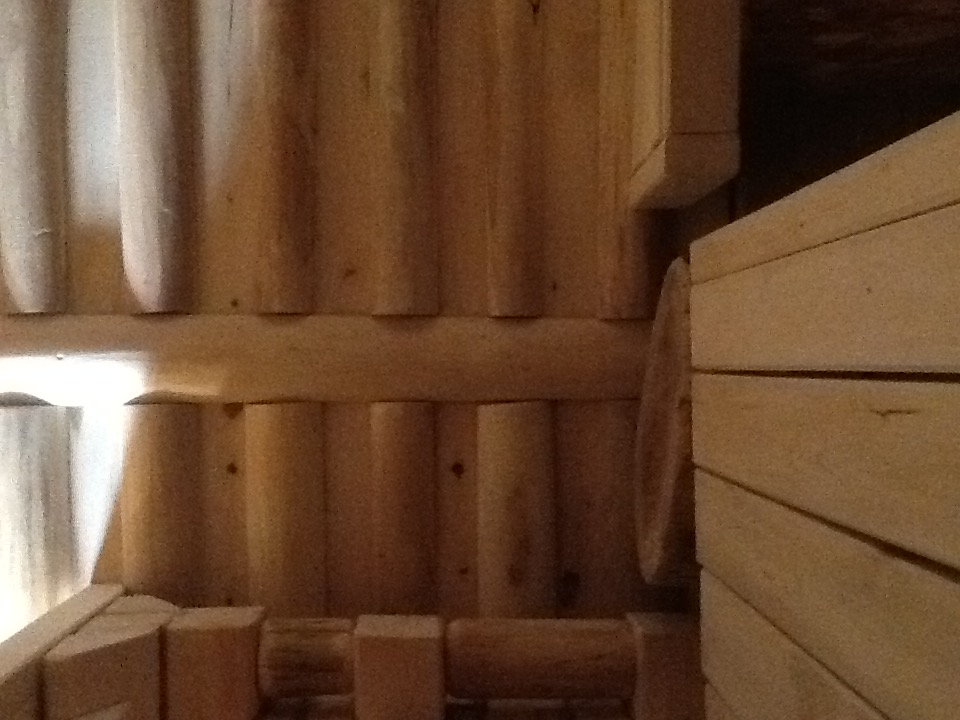 Стены бани блочный кирпич толщина 40 см , снаружи блок хаус с утеплителем, внутри на обрешётке базальтовая вата , гидроизоляция , далее пробковые плиты - стены 4 см (2 слоя) , потолок 8 см ( 4 слоя по 2 см) , затем само липовое полубревно на обрешётке и между полубревном сантиметровая толщиной липовая доска.
