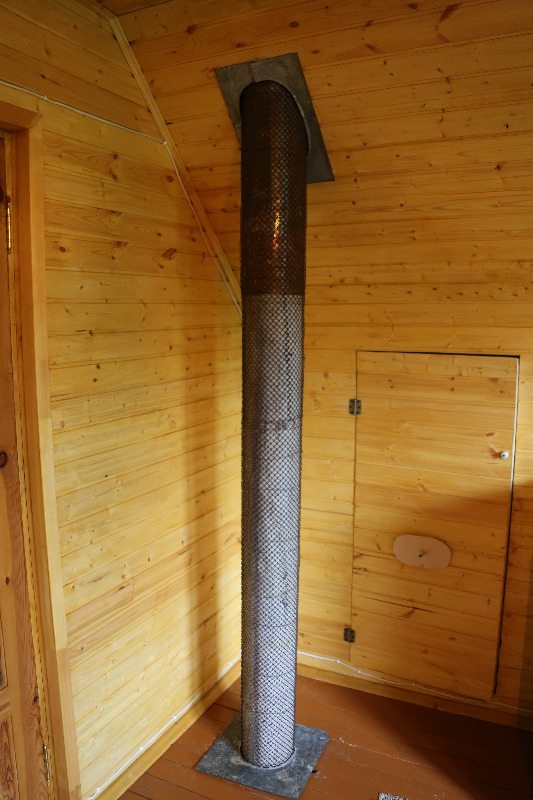 Печка стоит на фундаменте (плита 1мХ1м) и сверху на печке асбестовая труба.