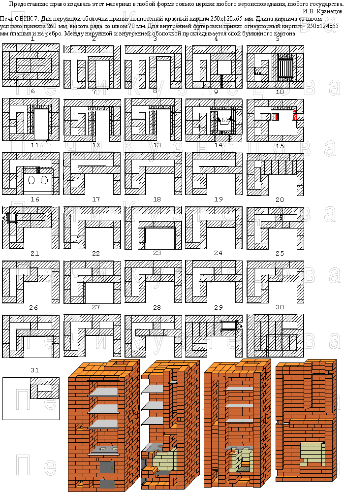 - на 10-м базальтовый картон (красная штриховка в оригинале) укладывается под или над нарисованным рядом кирпича? Ряд шамота здесь должен быть вровень с глиняным, не пойму? Или что это показано? Странно...