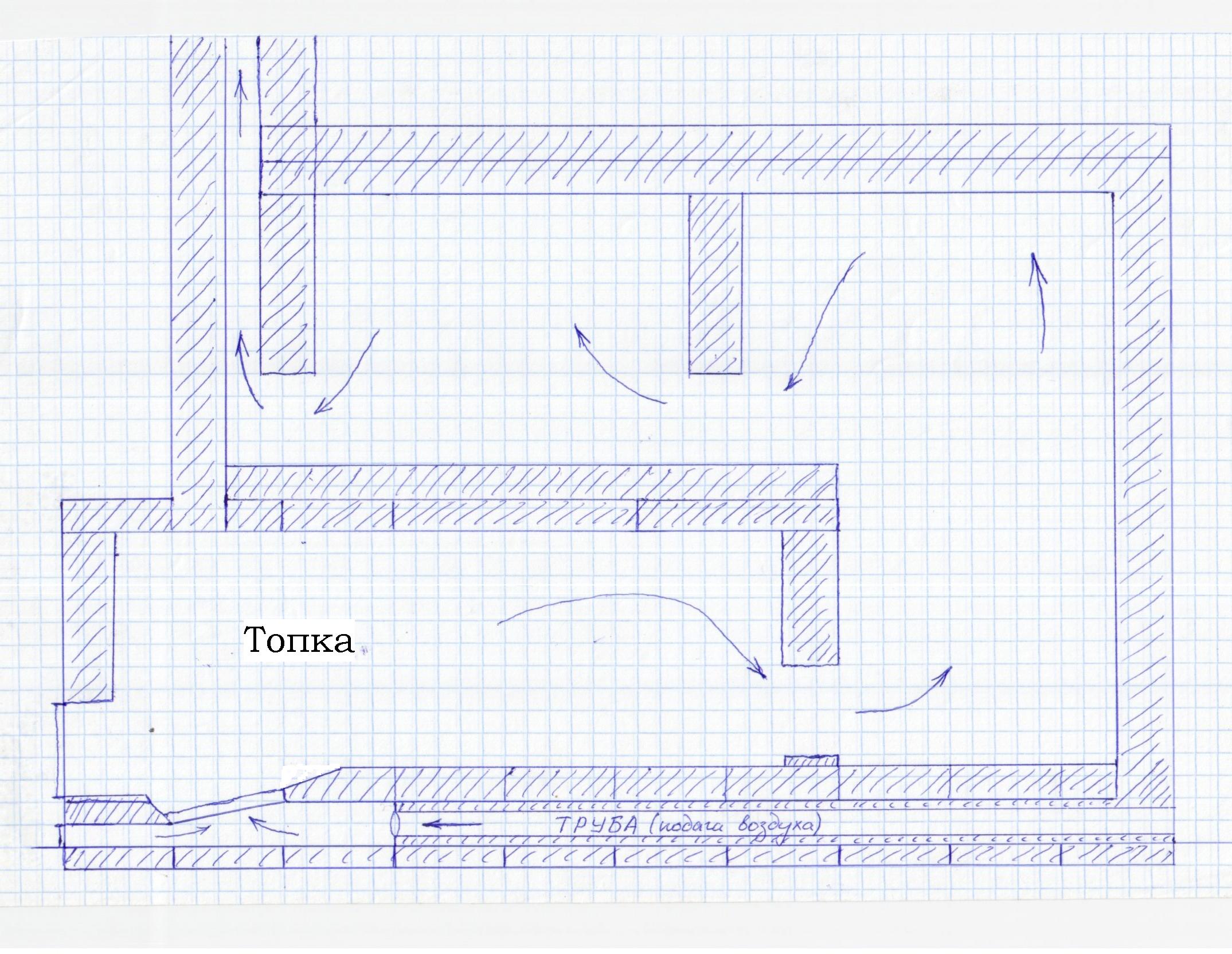 Спасибо за поддержку. Жду конечно. И буду ждать пока еще есть время. Выбора другого нет. Параллельно читаю, пытаюсь разбираться. 1300 конечно тоже вариант, но: 1. на кухню выдвигается допустим 400мм, минус стена - в основной комнате остается примерно 750 длины в основную комнату, при высоте максимум 1600. Думается что это маловато? да и по возможности хотелось бы площадь компенсоровать длиной а не высотой, т.к. как я уже писал - потолок низкий, 2 метра примерно. При колпаковой системе сопротивление даже при общей длине 2000 вроде как не должно быть слишком то большим? У знакомых пятиооборотка метра полтора, и работает вроде нормально, по меньшей мере с тягой проблем нет. Тут подумал что может быть еще немного изменить конструкцию - топку укоротить сантиметров до 75, а в оставшейся длине сделать колпак нижний? тогда его можно продлить почти до задней стенки, где уже будет выход в верхний большой колпак(на всю длину печи?) или два(если оставить размеры верхних колпаков примерно как сейчас). Но три колпака - наверное уже избыточно? Никак не могу разобраться с СШ в колпаковых печах - где и как он делается? Толком не понимаю. Если кто подскажет ссылочку на данный материал, чтоб было понятно даже таким дремучим как я - буду очень благодарен.