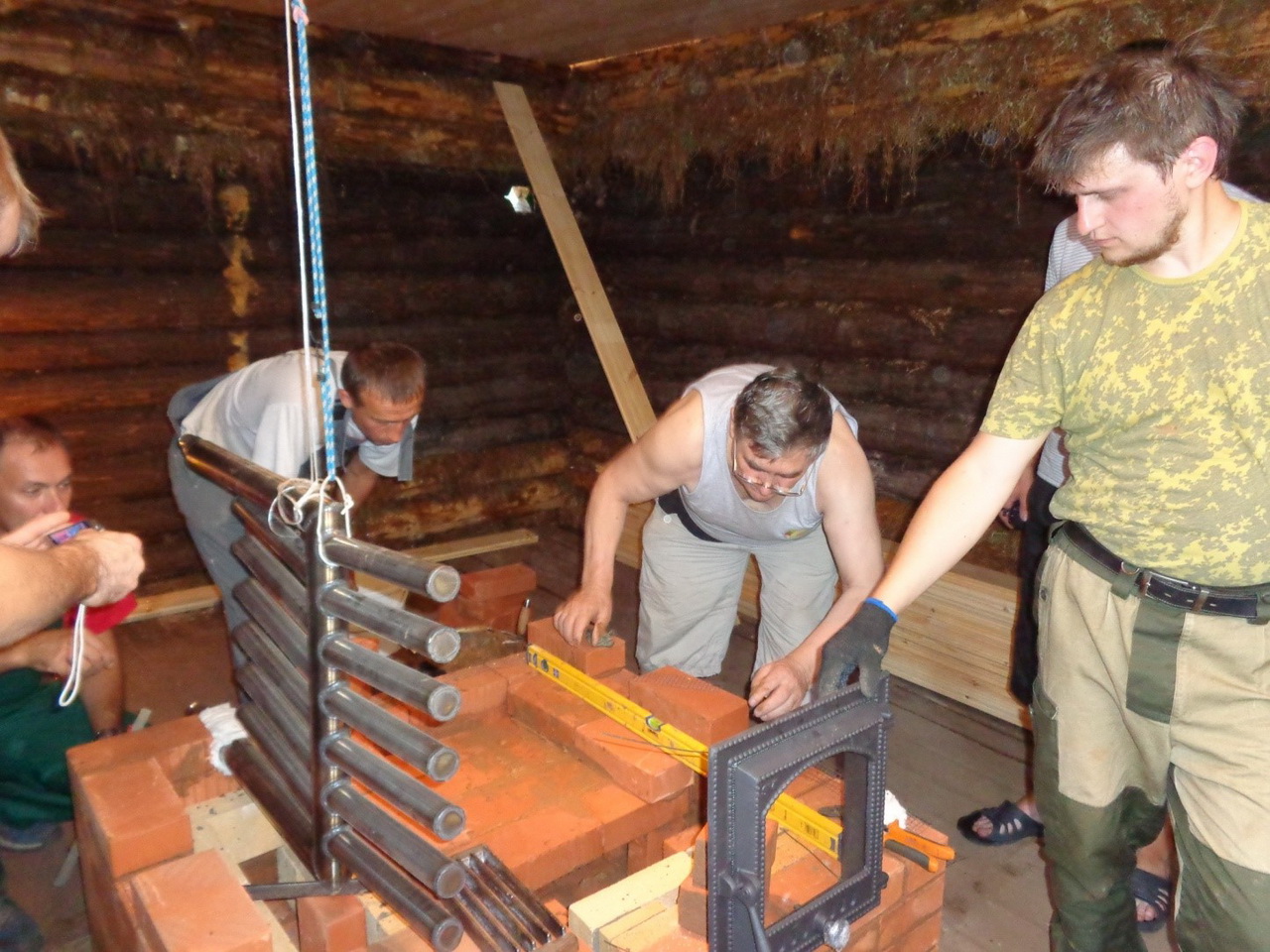 На последнем семинаре устанавливался регистр с выполненными по формуле отводящими запаянными трубками от центрального ствола теплообменника с подъемом вверх.