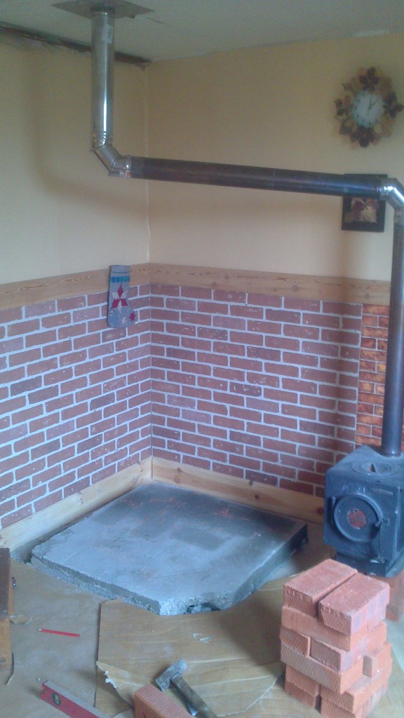 Подчистил дымоход от глины и раствора, пропитал жидким стеклом для пущей устойчивости к жару. Пиленый шамот тоже пропитал, думаю еще мастикой покрыть терракотовой.