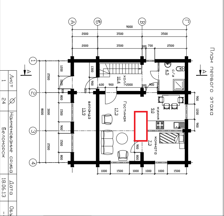 проект дома,фундамент под печь на30 см шире ,дом сделан из бруса по этому проекту