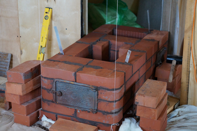 лещадкой на ребро. На фото можно посмотреть результат. Кладка, в основном, шла Кирово-чепецким кирпичом, радиусный Лоде, внутри Витебский. Пользуюсь печью два месяца. Основная отопительная печь пока ещё строится (ОИК 3К-19).