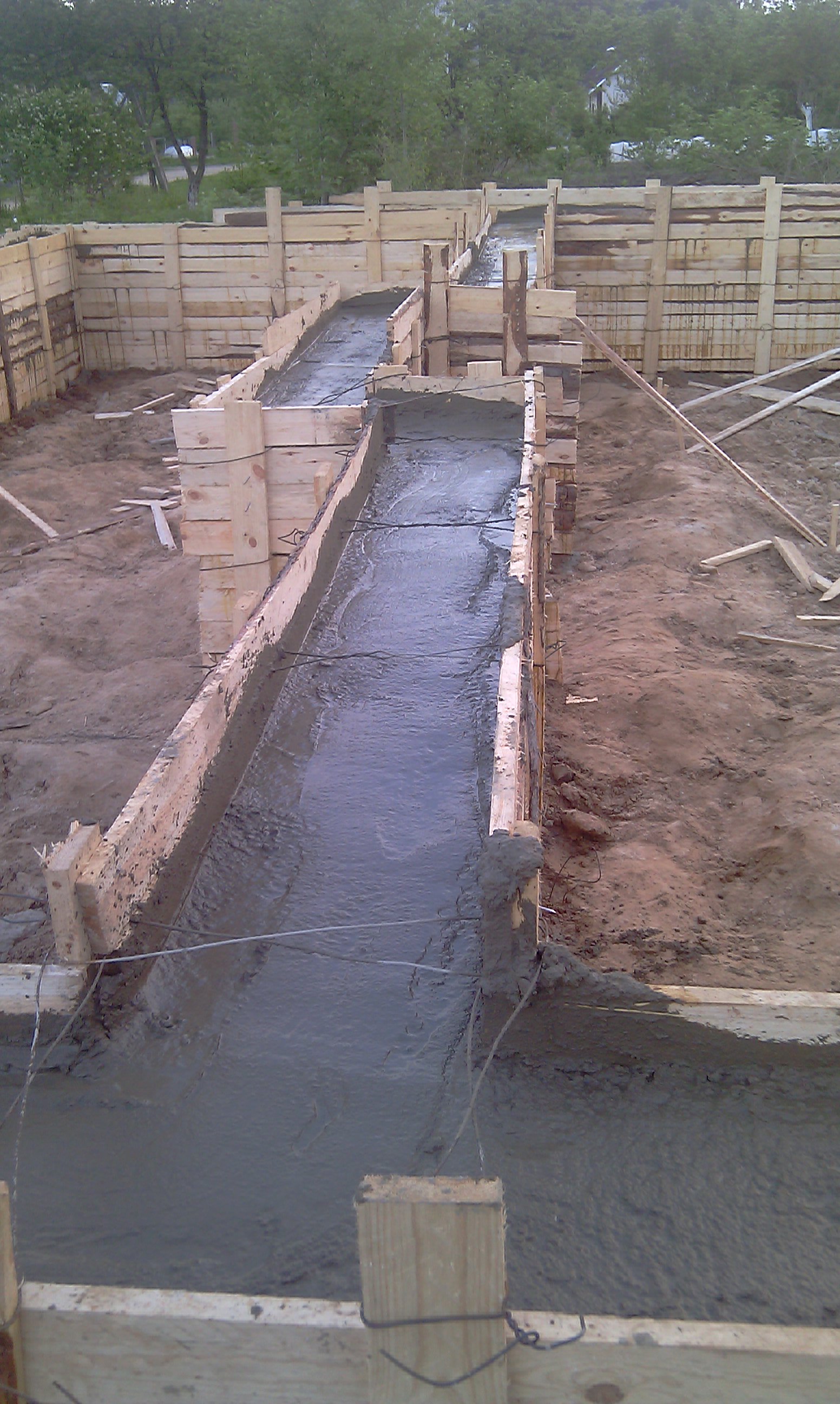 Фундамент под печь еще не залит... расстояние 1700 при отступе от основного фундамента по 5 см. Планировался фундамент 1700 на 1300. Заливать будем уже весной.