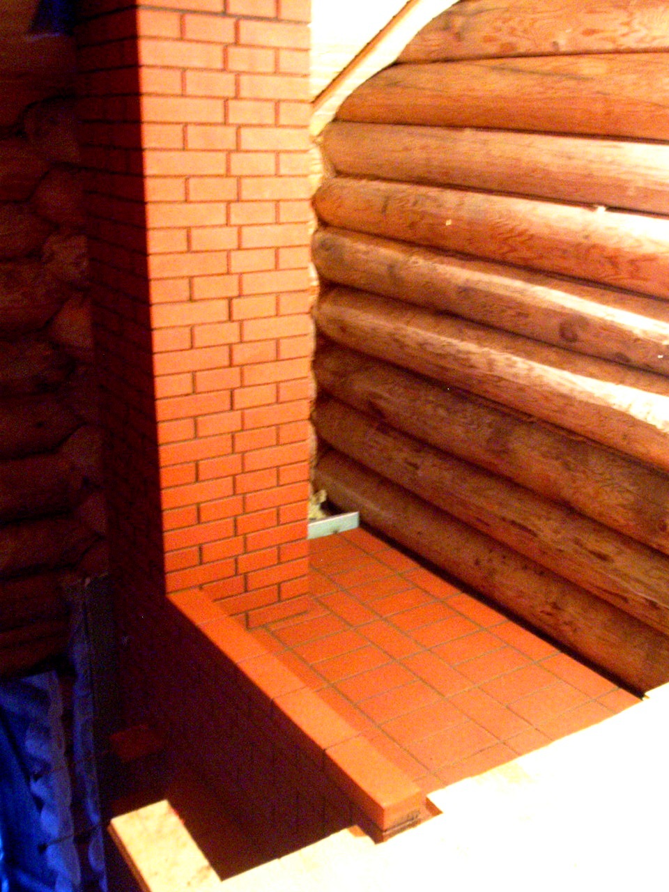 Здравствуйте, по поводу трубы- это сендвич труба, обложенная кирпичом с армированием, расстояние между кирпичом и сендвичем заполнено отсевом песка. Я это сделал, чтобы избежать излишнего теплосъема на трубе, она даже не греется. Печь вообще вся армирована через ряд тонкой сеткой. Что касается перевязки здесь вообще. Я делал очень много скрытых замков, внешне кладка - а внутри на самом деле замок, благо станок пилит мгновенно. По поводу разделки на втором этаже - она толщиной в кирпич, сделано специально незаметно и подведена к стене с зазором в 3-5 см, по идее по госту 260 мм до защищенной поверхности. Клиенту оставил инструкции как правильно "защитить" стенку сруба при дальнейшей отделке.