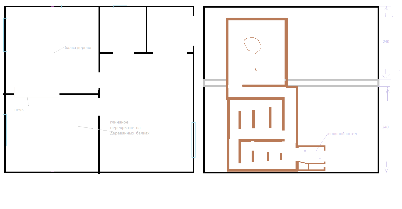 | ... Только двух этажная печь и котел в ней. Вещи сами по себе мало совместимые. Либо котел, либо большая печь... Тут придётся выбирать. Печь либо котел. |
