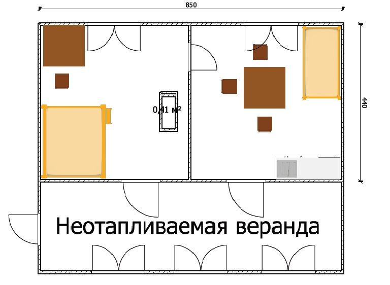 Еще в дополнение. Думал поставить печку рядом с дверью, но потом поприкинул, у меня по центру комнаты, там где дверь между комнатами идет здоровенное бревно через весь дом на котором все перекрытие держится, если я там стену уберу, у него как бы опоры будет меньше. Остается если резать стену то в противоположном от печи углу, что тоже бы не хотелось...