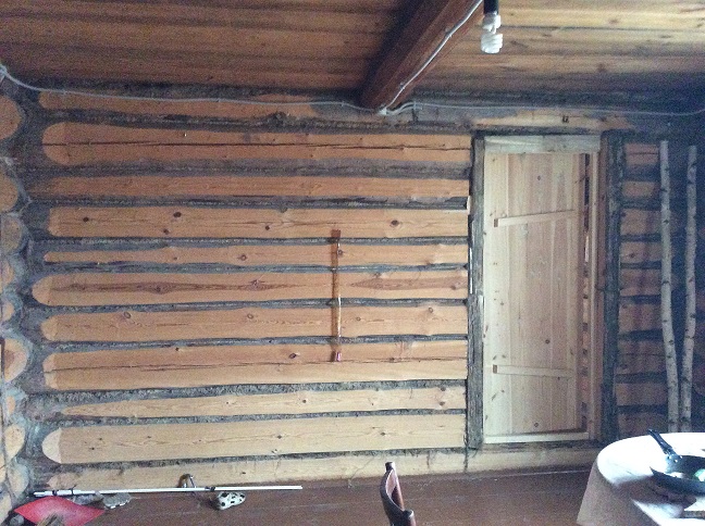 Абсолютно согласен!!!!! Самый правильный вариант. Печь сместить чуть ближе к двери, и просто расширить проём. Между дверью и печью, в этом случае, не будет кусков висящих брёвен. Для косяка двери - брус вертикально.