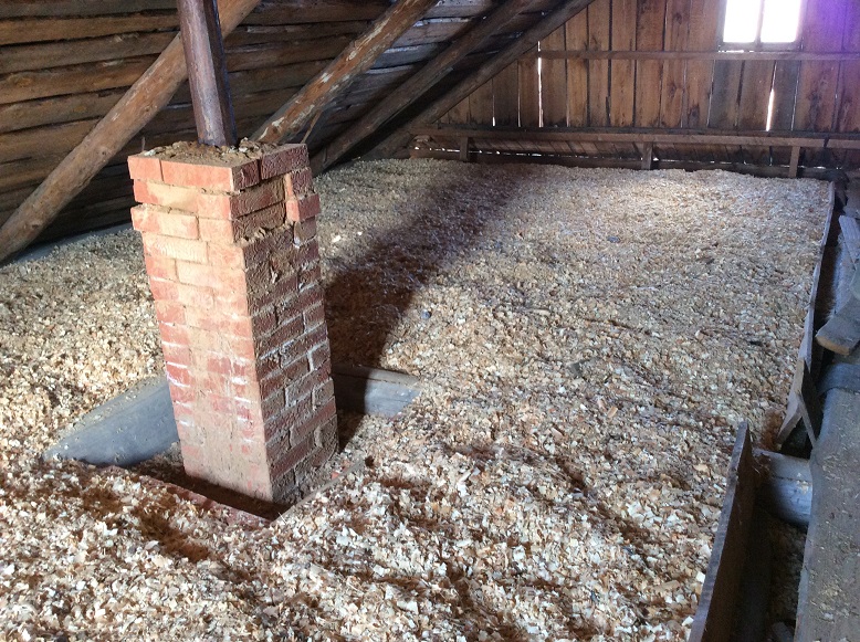 Вот еще фотка крыши. Если я смещу печку ближе к двери не получится ли там труба низковато? Смущает еще, что балка пропилена чуток. А веса там достаточно, еще на перекрытие надо извести, да опил побольше накидать... Если так делать думаю брус 15х15 у двери поставить и такой же с другой стороны печи...