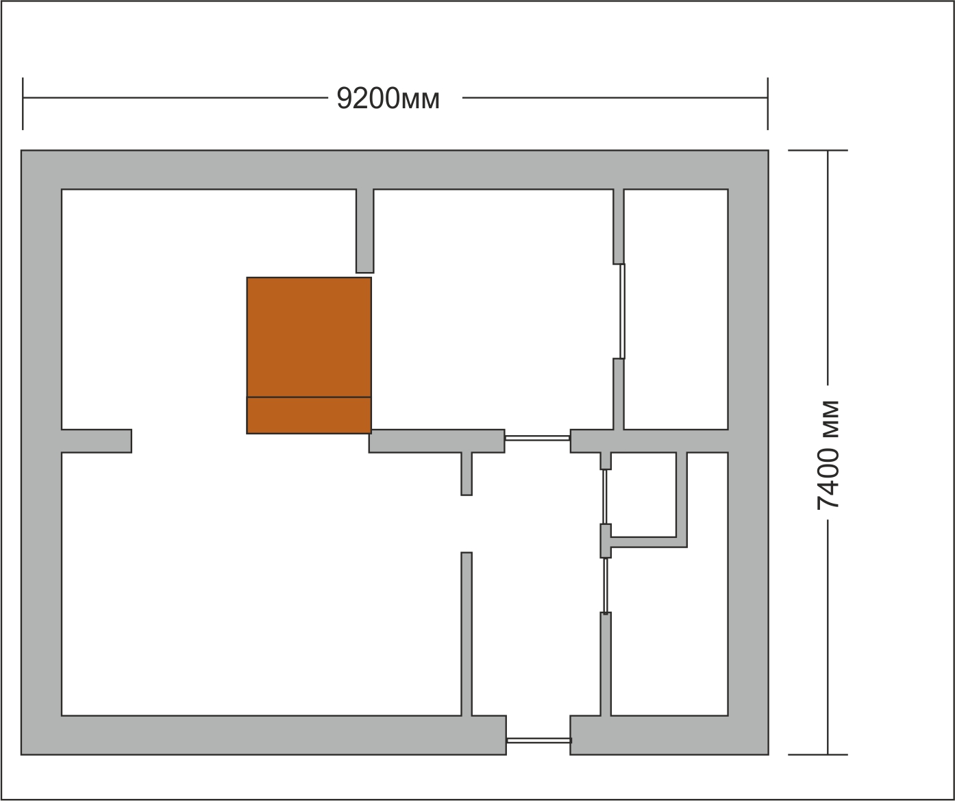 1.Если плясать от печи, и ставить ее так чтобы все помещения прилегали, как быть в таком случае с рубленными стенами внутри?