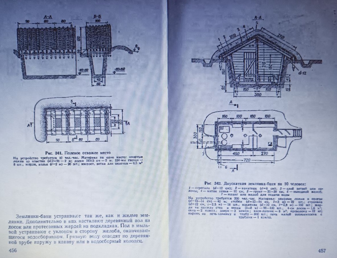 Для общего сведения выкладываю материалы "Наставления по военно-инженерному делу для Советской Армии" 1984 г. в части полевых бань и печей.