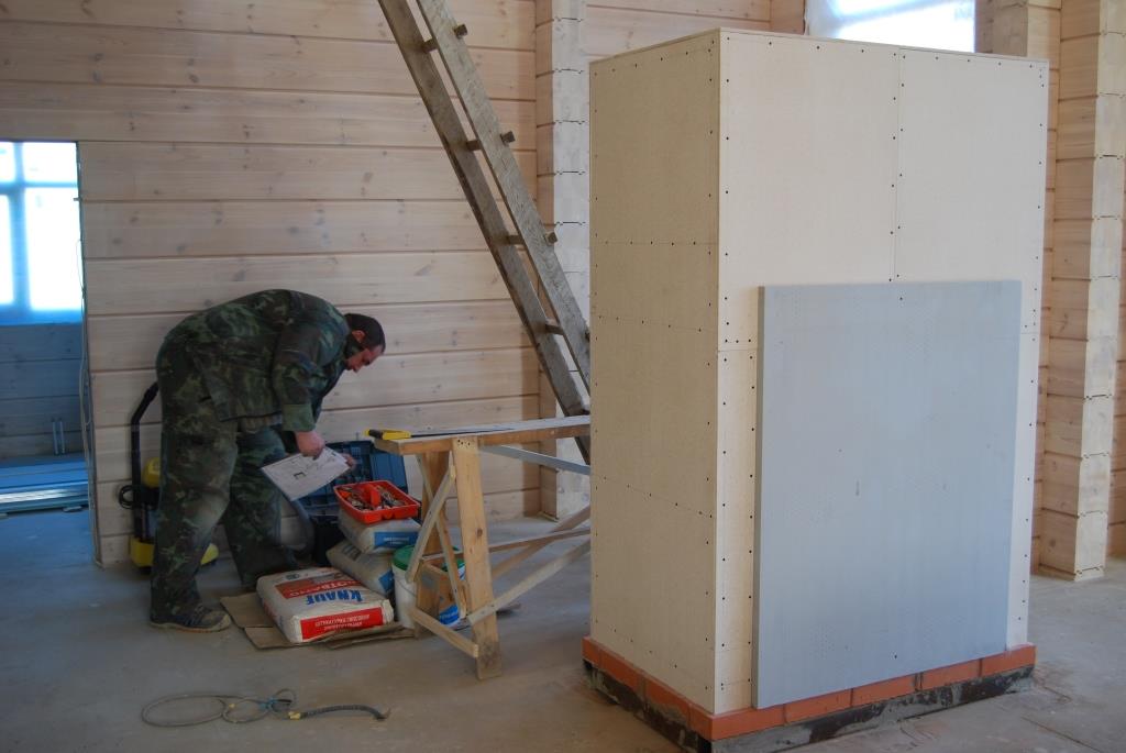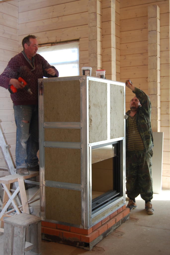 Зазор бы мы дали побольше... да на камин места оставили с гулькин ... , а топку хотелось большую , ну и пришлось напрягать извилины, что бы усе это впихнуть, без значительного перегрева.