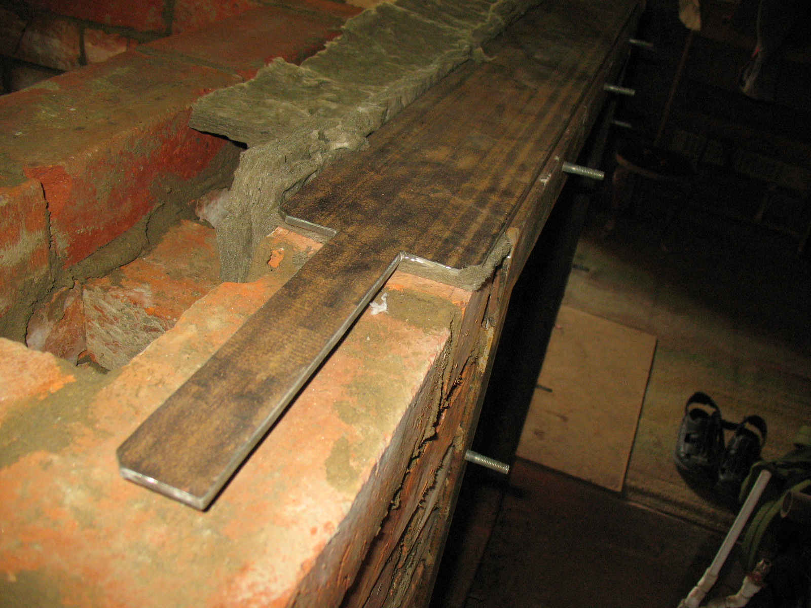 | "Замковая" установка рамы котла (полка швеллера - прокладка - паз в кирпиче) |