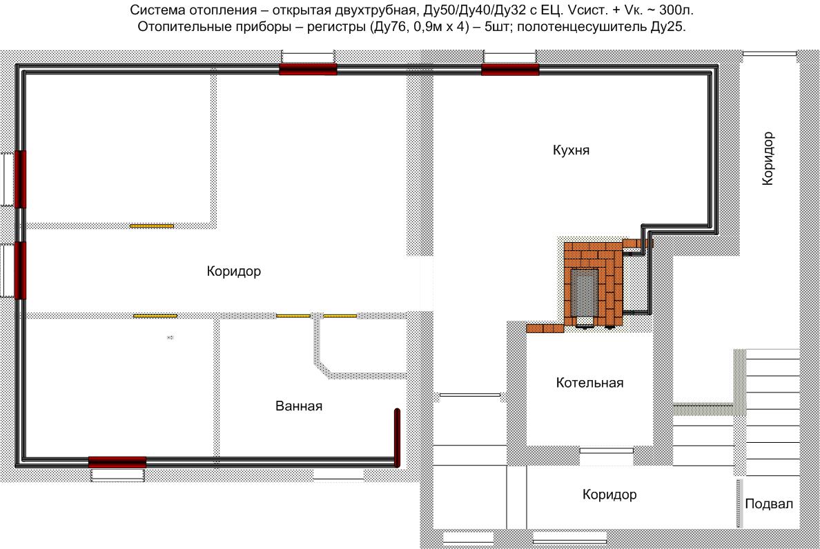 Система отопления - с ЕЦ, низкотемпературная инерционная, поскольку проживание постоянное. Дом одноэтажный, 140 кв.м.