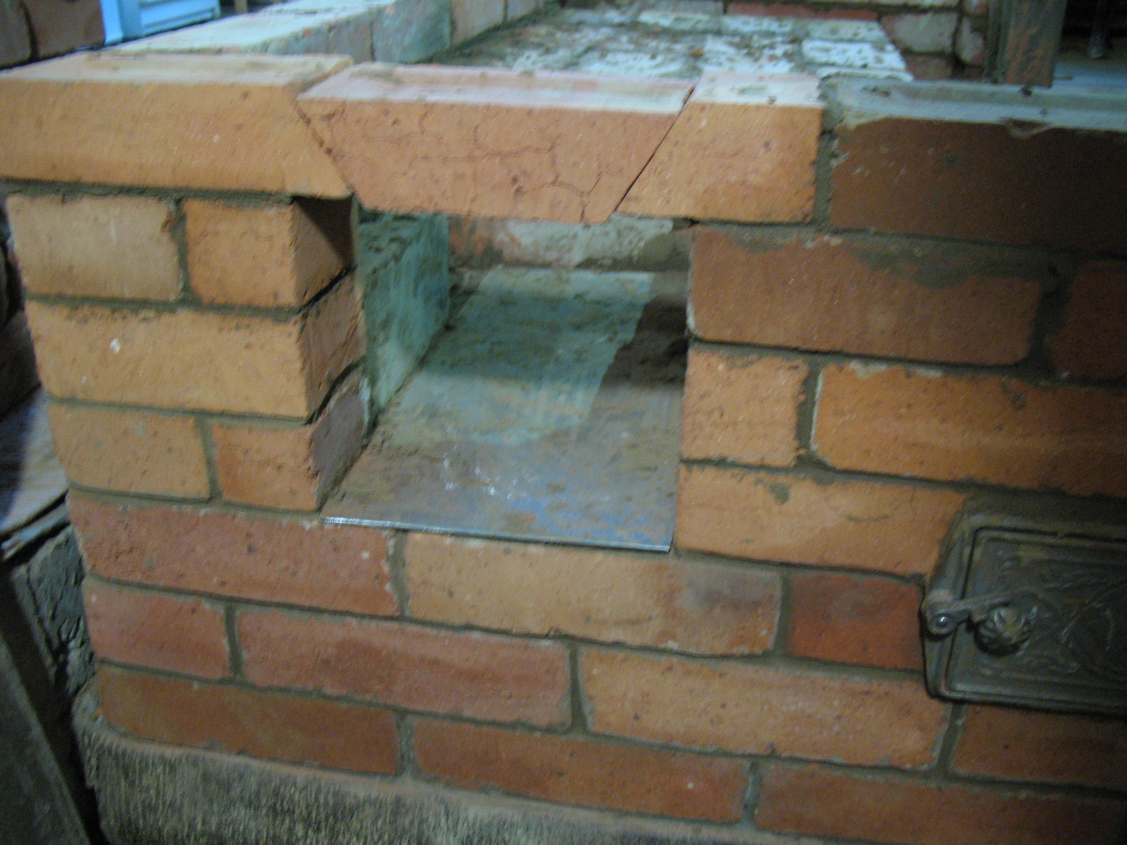 Добрый вечер. Пока гиганты мысли размышляют о принципах свободного движения газов, приглашаю всех новичков и любителей воспользоваться моими граблями. Ошибка распространенная. Главное, я об этом знал, если бы спросили, довольно бойко объяснил бы, чем это грозит. Если поднатужиться, можно даже разрисовать векторы сил. Хотел сэкономить минуты, резал кирпичи перекрытия зольника, топочной дверцы, в том числе и шамот, «на глазок», без разметки. На фото хорошо видно, что суммарный угол получился менее 90 град. А нужно наоборот, более 90. В результате при нагревании-остывании этот кирпич работает как клин, которым раскалывают чурки. Из-за такой мелочи как минимум три кирпича «гуляют», заставляя меня грызть свои локти.