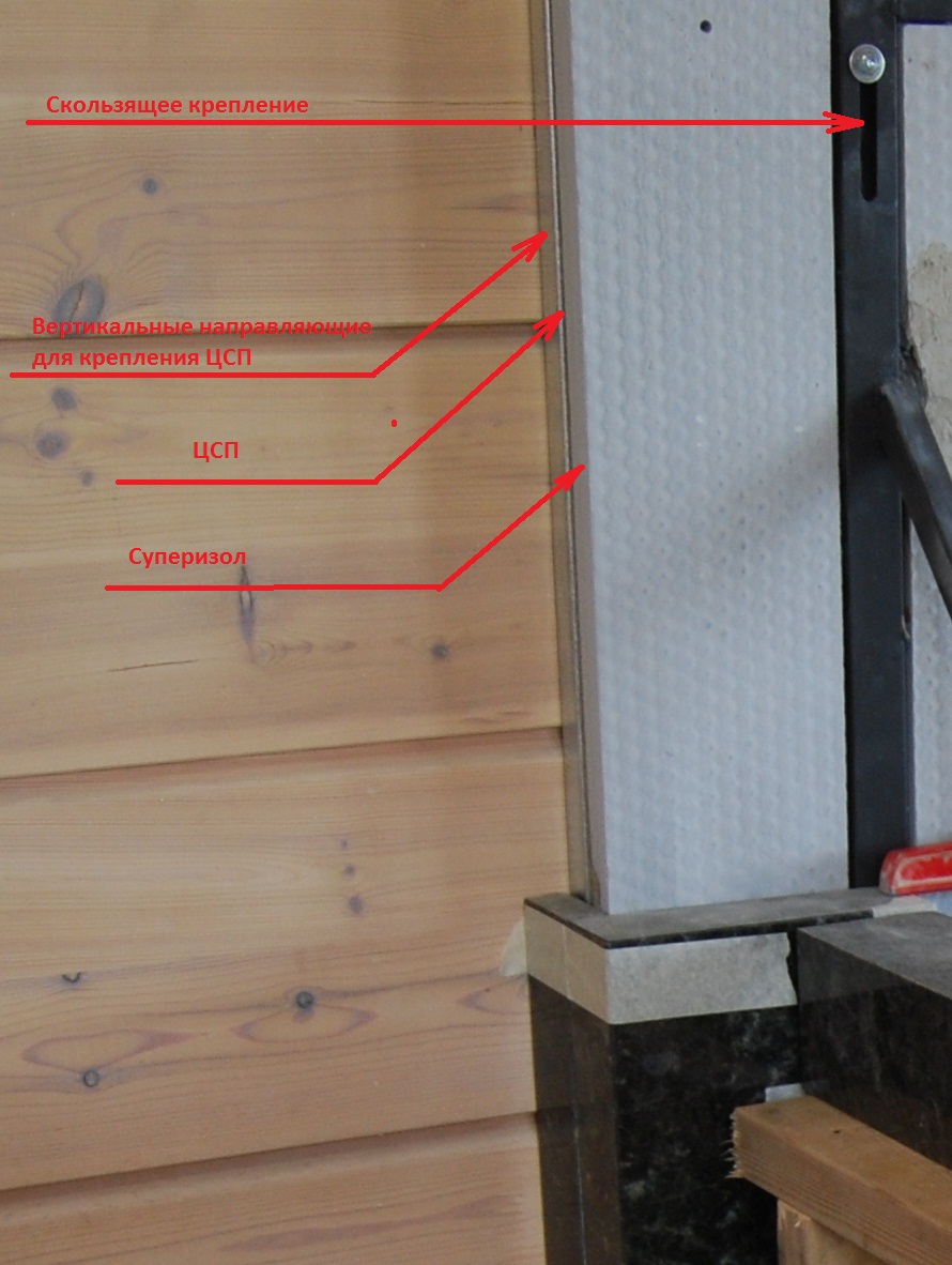 Верхняя рама упирается в стену (дерево) или через суперизол?