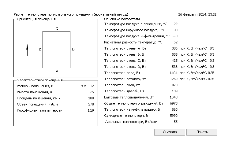 Рассчитал теплопотери