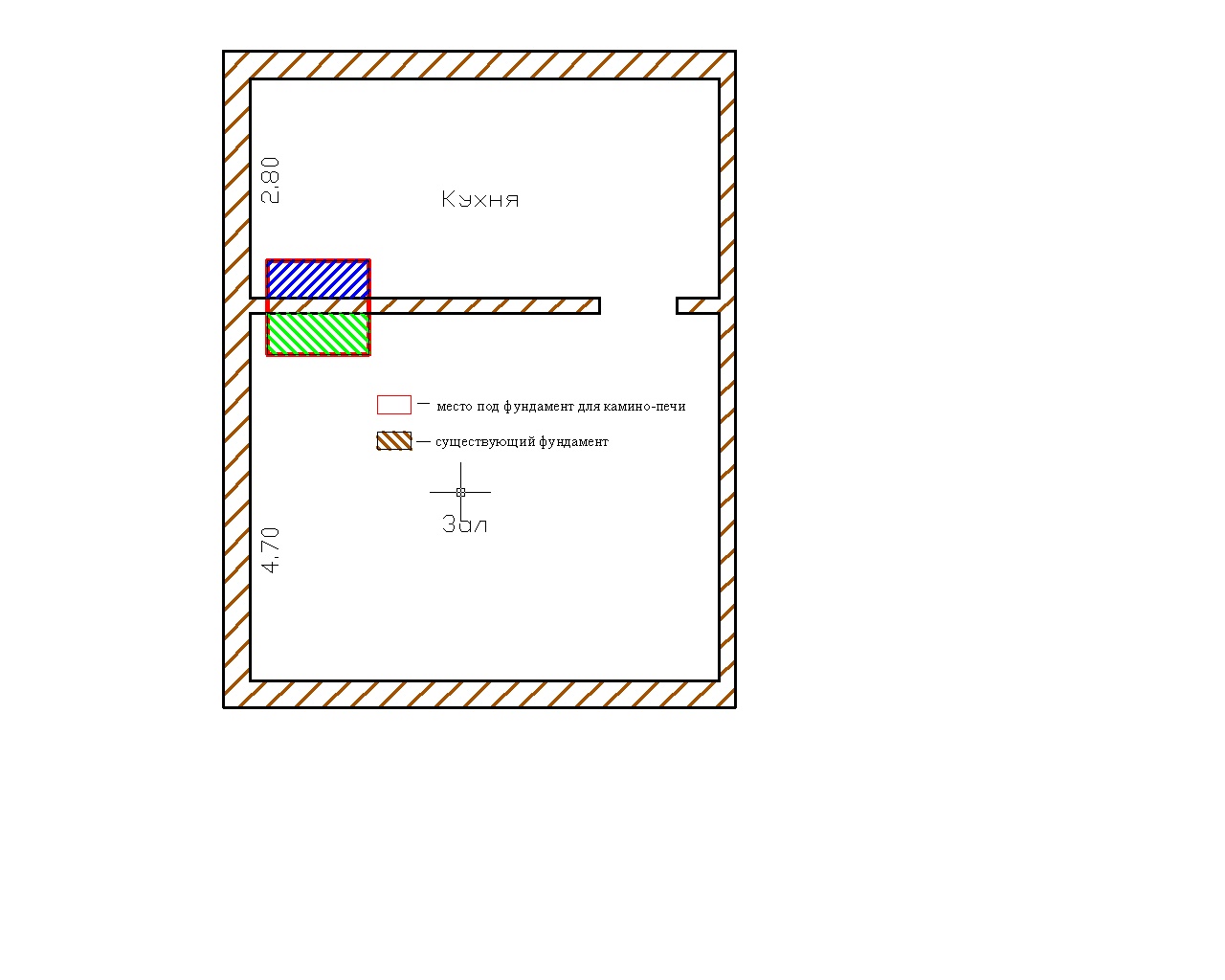 Добрый день. Очень нуждаюсь в помощи решения проблемы ,с которой столкнулся. Будет строиться камино-печь. Строиться будет таким образом ,чтобы часть печки была на сторону кухни, а камин - в зал. Проблема в том, что между этими комнатами уже есть фундамент, причем глубокий и армированный. Фундамент со стенами стоит уже около 10 лет. Вопрос. Можно ли подкопать в зеленой и синей зонах метровые котлованы, закрепиться по возможности арматурой в существующий фундамент, отсыпать, забутовать, заармировать и залить уже общий фундамент под камино-печь? Или все-таки в красной зоне нужно разрушать старый фундамент и заливать новый под камино-печь, ни коим образом не связанный с существующим фундаментом?