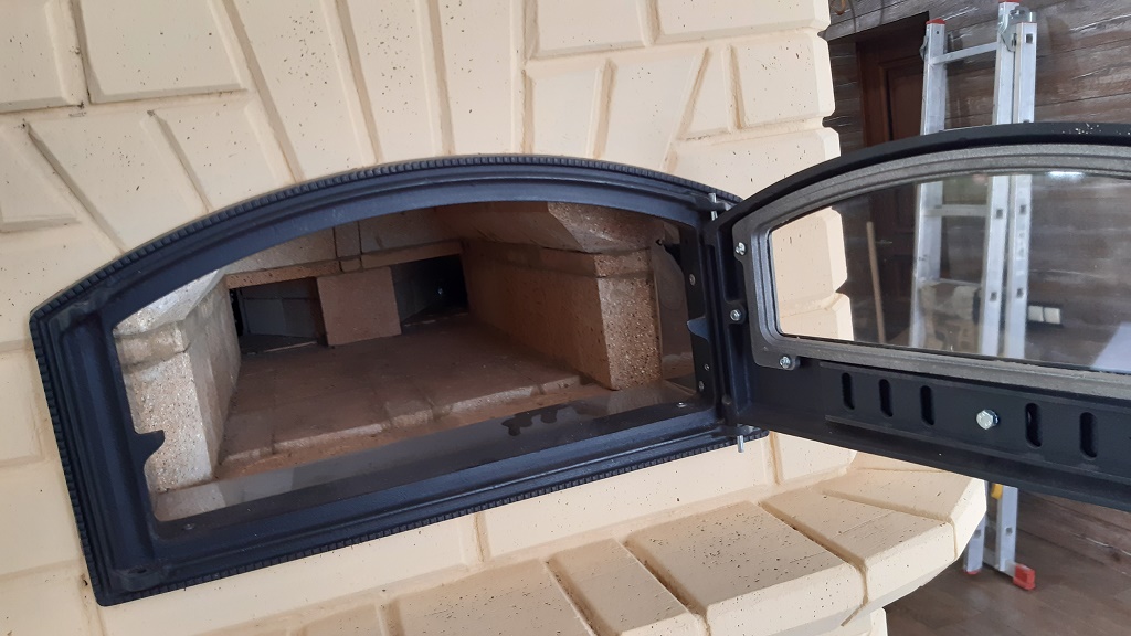 Врезал огнеупорное стекло Robax в кирпич. По кругу стекла проложен шнур. В пазу стоит свободно.