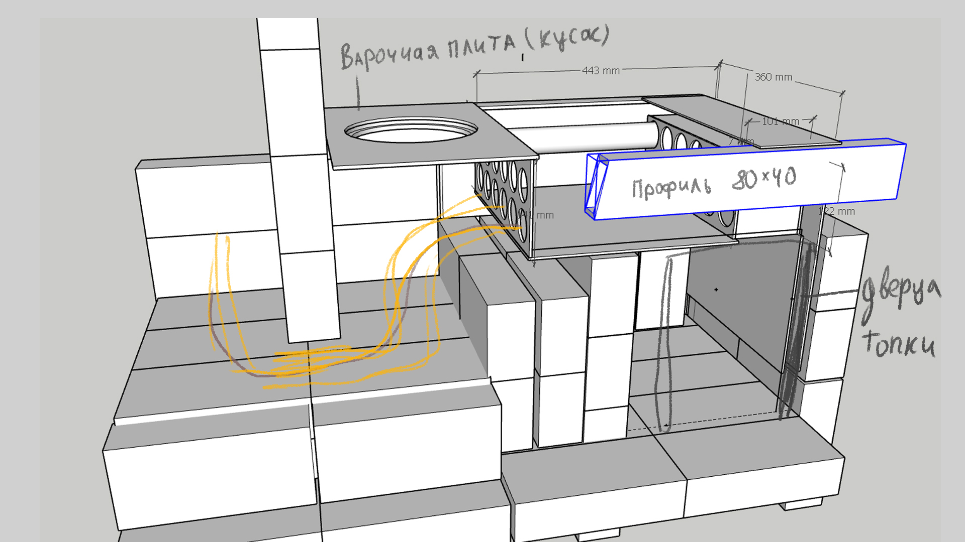 И еще хотел узнать , есть ли смысл наращивать высоту топки ?Как я понял это делается для лучшего сгорания дров (для дерева читал высота должна быть от 70 до 100 см . Но эта печь как и большинство печей с чугунной плитой имеет низкую топку , это вроде как типовой проект . Собственно вопрос , нужна ли эта высота 70 см или можно убрать варочную плиту , накрыть вермикулитовой плитой и дело в шляпе?