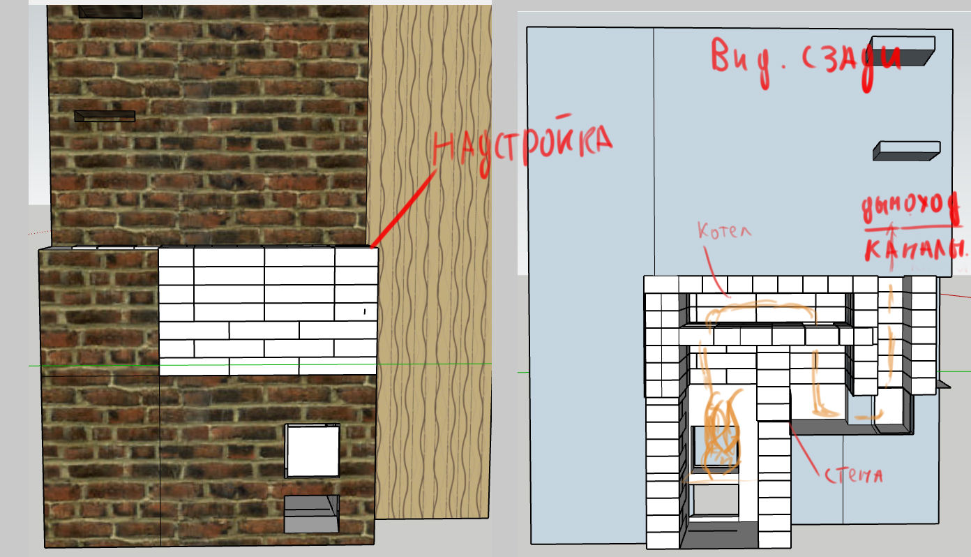 А если сделать надстройку из кирпича , тем самым увеличив высоту топки до 67 см и над топкой установить котел?