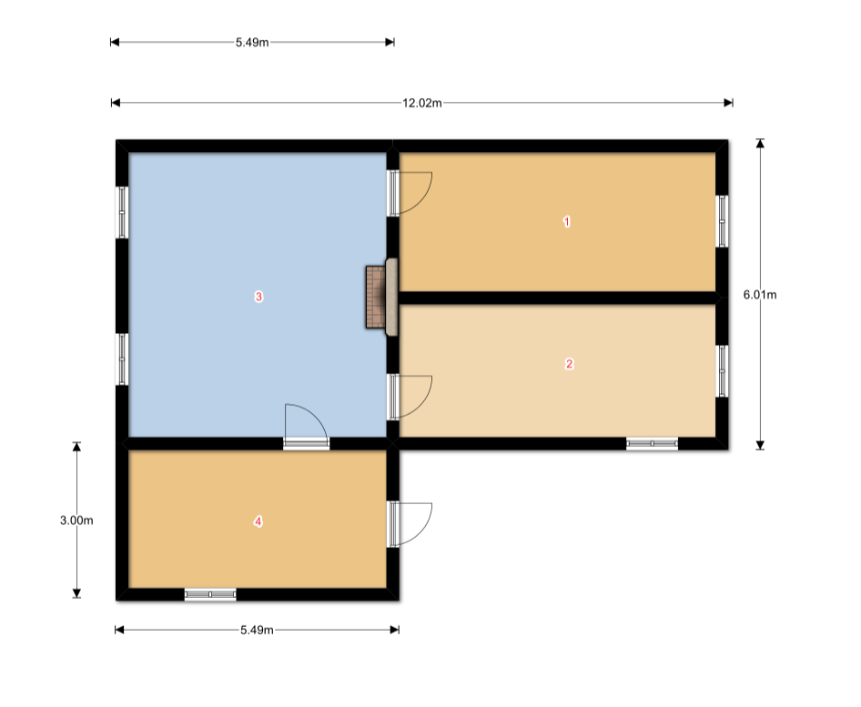 Сейчас активно ведется работа по перепланировке дачного дома, в котором не малую роль будет играть камин. В первую очередь учитывается насколько хорошо он будет обогревать всю жилую площадь. Комнаты 1 и 2 спальные. Комната, где будем проводить основное время - 3.