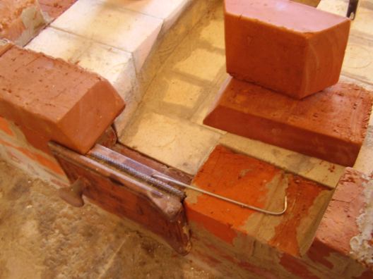 | Огнеупор козырьком нависает над красным, где-то на половину его ширины |