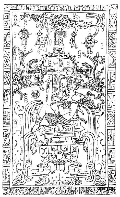 | Хотел позаимствовать панно из Храма Надписей... есть мнение что это древний астронавт в летательном аппарате |
