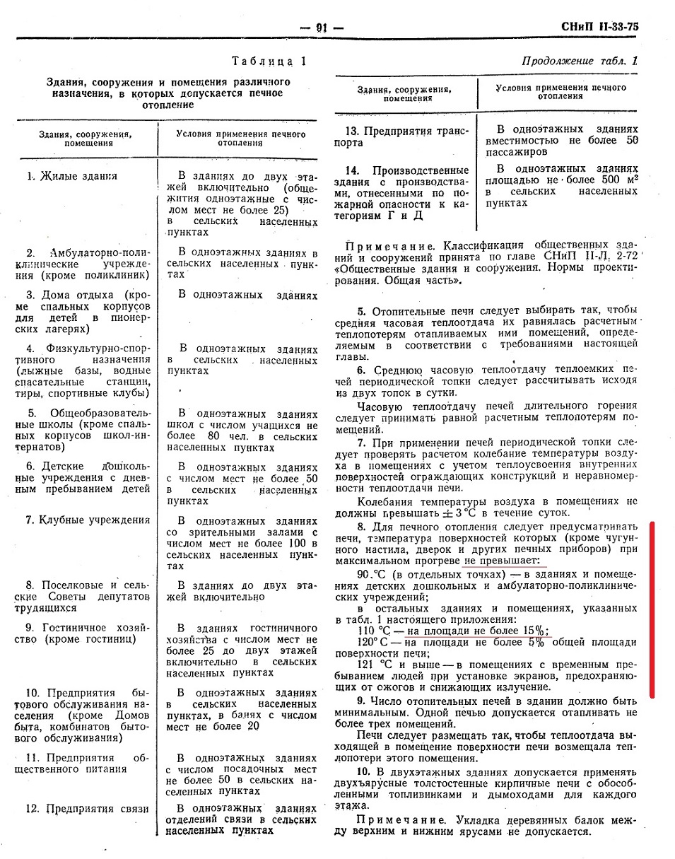 Есть проблема с последним абзацем - он относится к малотеплоемким печам, которые почему-то когда-то были выброшены из СНиП.