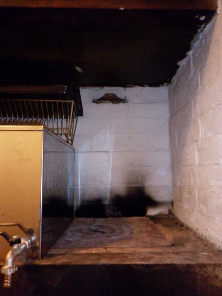 Откойте все маленькие дверки и выгребите оттуда всю золу и копоть.